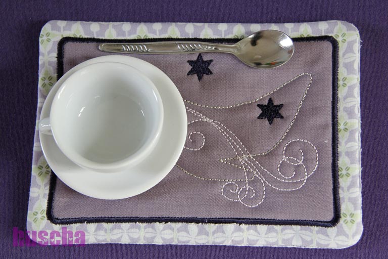 Den Rest hat die Stickmaschine erledigt. Nur noch umdrehen, Wendeöffnung schließen und schon kann die Weihnachtstafel gedeckt werden.